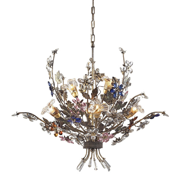 Brillare 6 Light Chandelier With Multicolor Crystal Florets