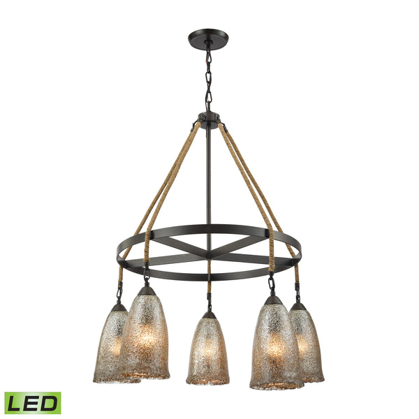 Hand Formed Glass 5 Light LED Chandelier In Oil Rubbed Bronze