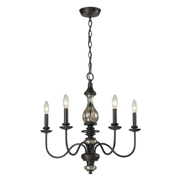 Veronica 5 Light Chandelier In Vintage Rust And Antique Mercury Glass