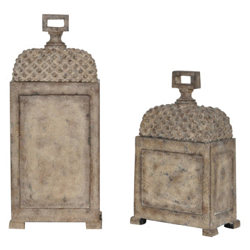 Aberdeen Boxes Set of 2 Resin Boxes in Scotland Cream Finish (L) 6.75"W x 4.25"D x 16"Ht., (S) 7"W x 4"D x 12"Ht