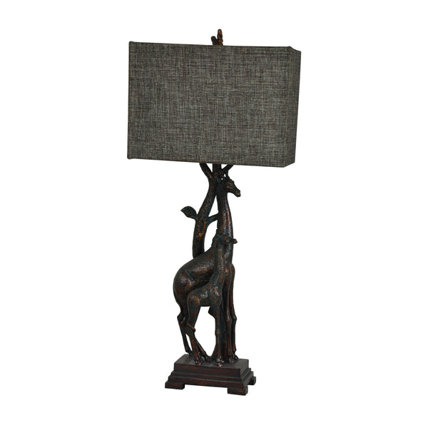 Giraffe Table Lamp 32.5"Ht.,Resin Bronze Finish 14/9 x 14/9 x 10 Smoke Linen Shade