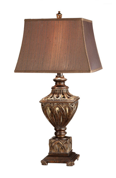 Monticello Table Lamp Resin Table Lamp in Rich Bronze Finish (13/13x17/17x12" Brown Square Shade) 34.5" ht.