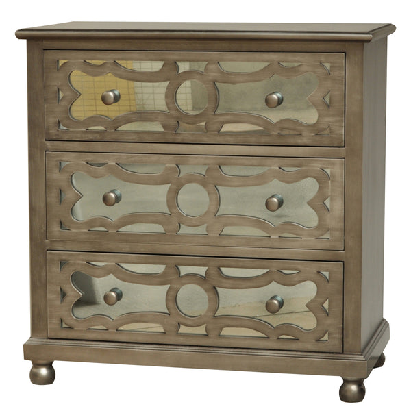 Preston 3 Drawer Pewter w/ Antique Mirror Preston 3 Drawer Pewter w/ Antique Mirror 31.50*15.75*31.75 31.50*15.75*31.75