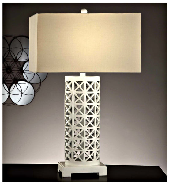 Starlight Table Lamp Gloss White Finish Table Lamp (11/18x11/18x10" White Linen Shade) 30.5" Ht.