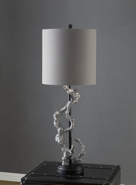 Twisted Branch Table Lamp 43.5"Ht Twisted Branch Table Lamp 43.5"Ht.,Resin Bleached Gray Finish 15x15x15 Charcoal Gray Linen Shade Table Lamp 43.5"Ht., with 15x15x15 Charcoal Gray Linen Shade