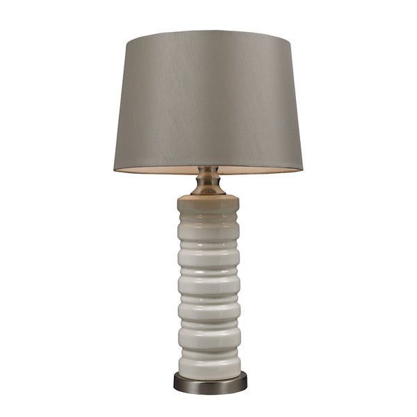 Cream Crackle Ceramic Table Lamp With Brushed Steel Accents