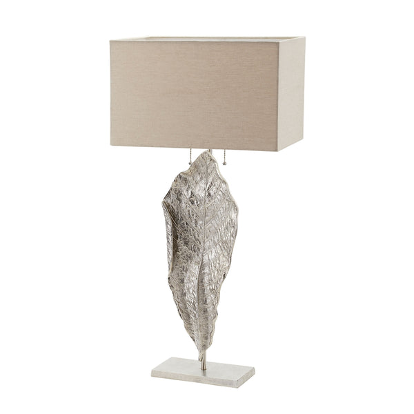 Tall Leaf Table Lamp in Nickel With Natural Linen Shade