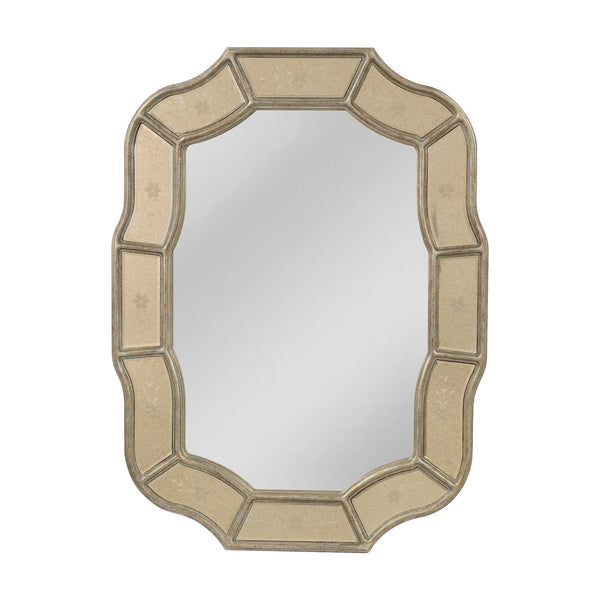 The Swiss scalloped edge and combination of antique with clear glass enhances the nostalgic mood and adds a touch of romanticism.