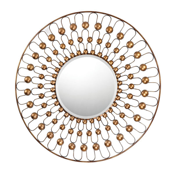 36-Inch In Diameter The Frame Is Formed From Wire And Metal Cups Painted In Dark Gold Finish With Bronze Accenting. The Mirror Is Beveled And 15-Inch Diameter.