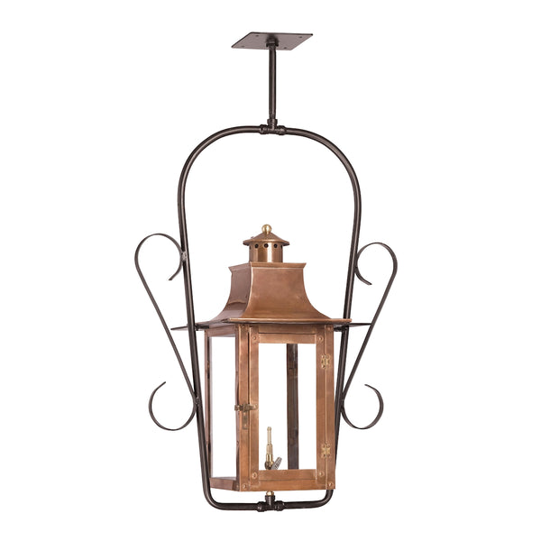 outdoor gas ceiling lantern maryville collection in solid brass in an aged copper finish.