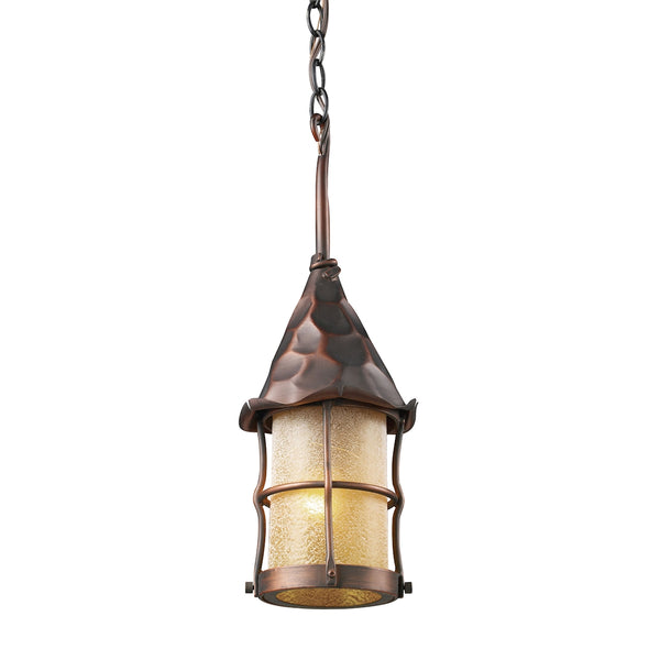 Rustica 1 Light Outdoor Pendant In Antique Copper And Amber Scavo Glass