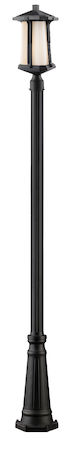 The matte opal glass of the Harbor Lane family contrasts wonderfully with black cast aluminum fixtures. Predominantly square in shape, the fixtures taper narrow to the top with pillar.