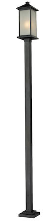 Clean, straight lines and rectangular detailing define the classic styling of this large outdoor post light. White seedy glass panels create an elegant glow, while the cast aluminum hardware finished in black can withstand nature’s seasonal elements.