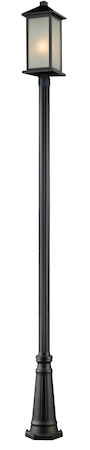 Clean, straight lines and circular detailing define the classic styling of this large outdoor post light. White seedy glass panels create an elegant glow, while the cast aluminum hardware finished in black can withstand nature’s seasonal elements.