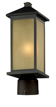 Clean, straight lines and rectangular detailing define the classic styling of this outdoor posthead light with round fitter. Tinted seedy glass panels create an elegant glow, while the cast aluminum hardware finished in oil rubbed bronze can withstand nature’s seasonal elements.