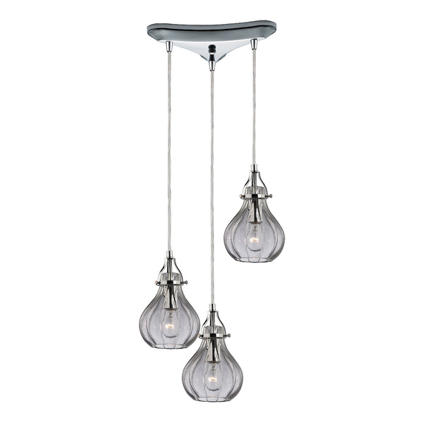 Danica 3 Light Pendant In Polished Chrome And Clear Glass