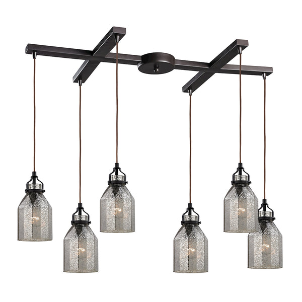 Danica 6 Light Pendant In Oil Rubbed Bronze And Mercury Glass