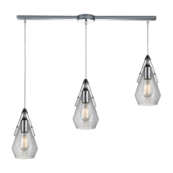 Duncan 3 Light Pendant In Polished Chrome And Clear Glass