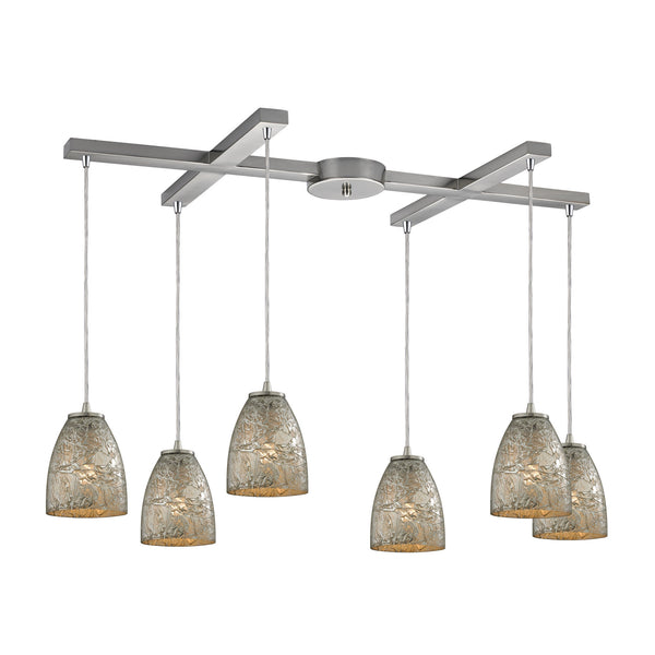 Fissure 6 Light Pendant In Satin Nickel And Silver Glass