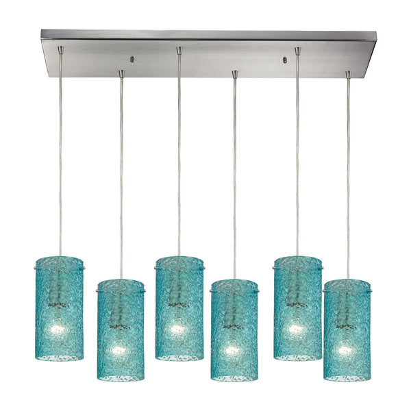 Ice Fragments 6 Light Pendant In Satin Nickel And Aqua Glass