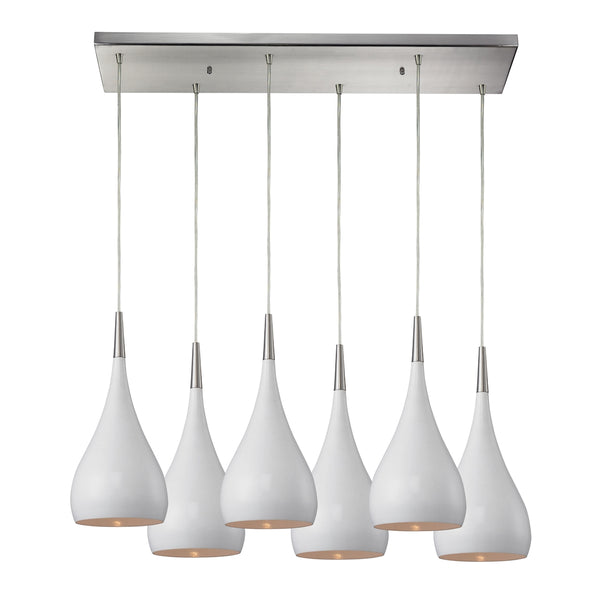 Lindsey 6 Light Pendant In White And Satin Nickel