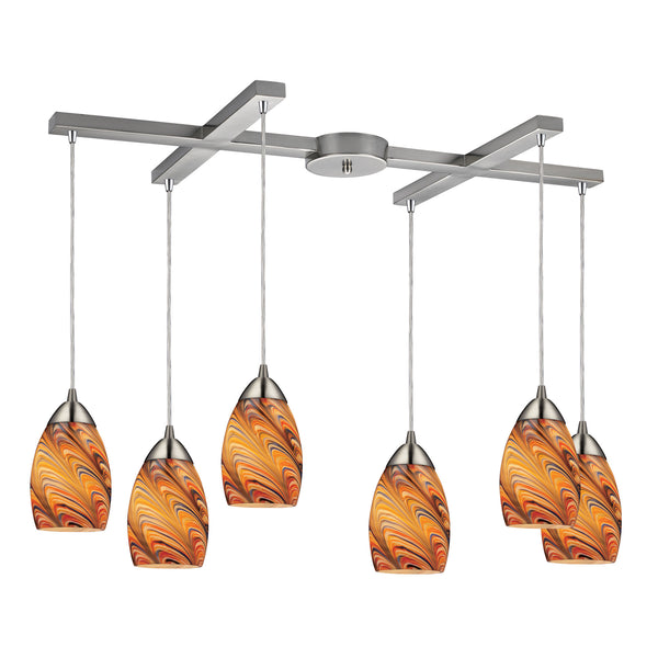 Mini Vortex 6 LED Light Pendant In Satin Nickel And Rainbow Glass