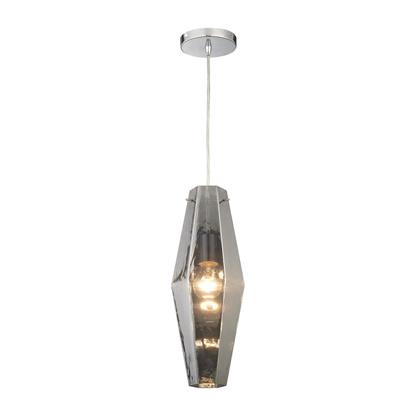 Hexagonal shaped mini pendant with black chrome glass and Polished Chrome finished hardware.