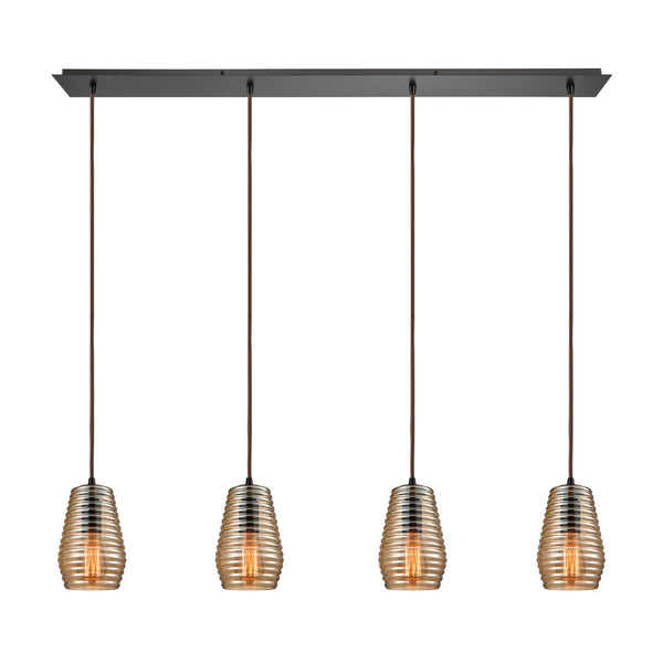 Ribbed Glass 4 Light Pendant In Oil Rubbed Bronze