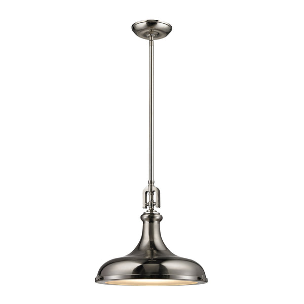 This series has a smooth curving profile adorned with a decorative link casting adding to the restoration appeal of these designer pendants. The edge of the metal shade is defined by a ring that has period-authentic thumbscrews and a frosted glass diffuse