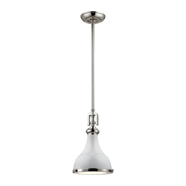 Rutherford 1 Light Pendant In Polished Nickel And Gloss White
