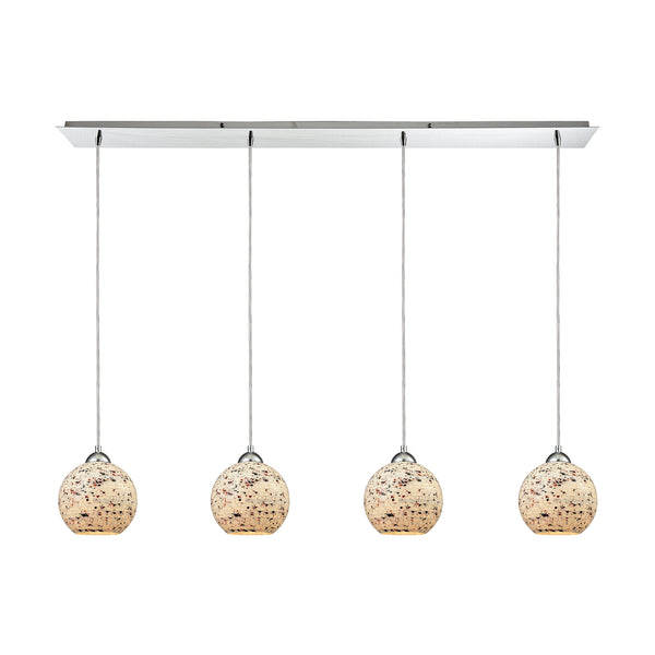 Spatter 4-Light Linear Pan In Polished Chrome With Spatter Mosaic Glass Pendant