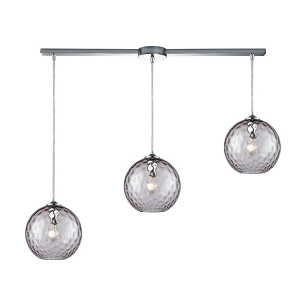 Watersphere 3 Light Linear Bar Fixture In Polished Chrome With Purple Hammered Glass
