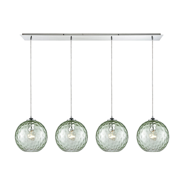 Watersphere 4 Light Linear Pan Fixture In Polished Chrome With Green Hammered Glass