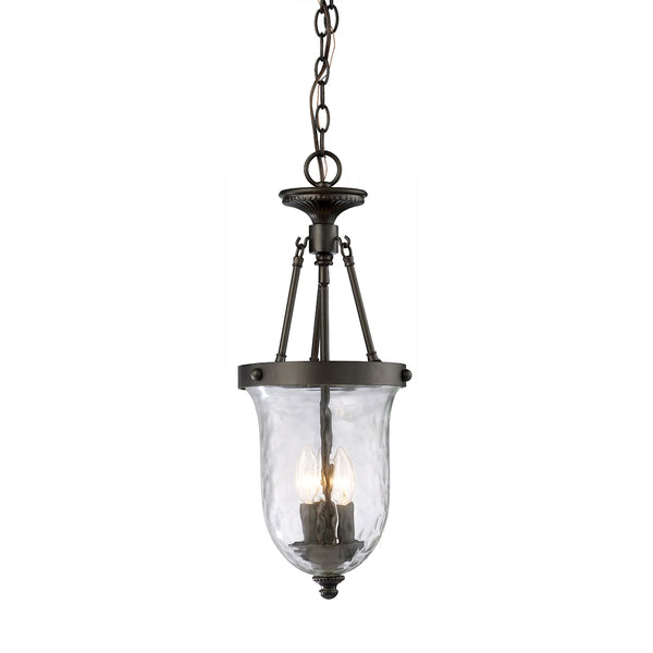 Yorkville 3 Light Pendant In Oiled Bronze And Water Glass