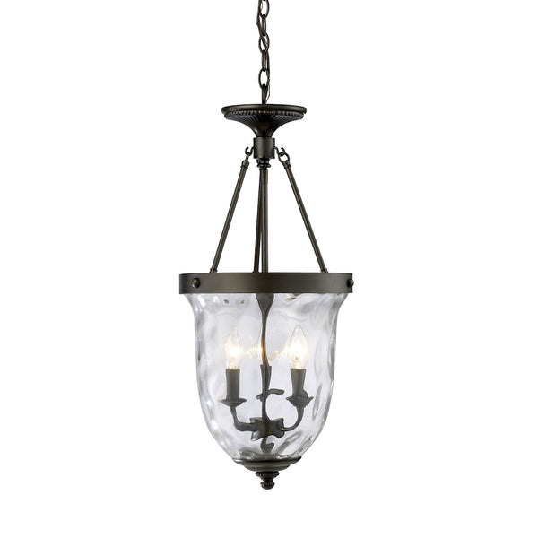 Yorkville 3 Light Pendant In Oiled Bronze And Water Glass