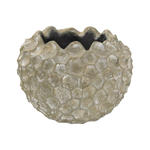 Perfect in White Wash but absolutely resplendent in Hot Gold, Gloss White, or Emerald, our Coral Texture Vessels are the perfect anchor for any glamorous habitat. Each piece's charmingly irregular divots suggest the organic symmetry of deep sea coral, while their uncanny scalloped mouths imitate those of giant bivalvia. Try the White Washed version on a rustic table next to a great big potted palm. Light-weight fiberglass construction.