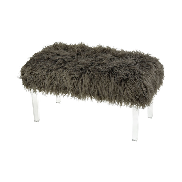 The Charleville Bench combines sparkling clear acrylic with a playful spray of Grey faux mohair, combining the fun and unapologetic glamour of Mid-Modern styling with the bold unconventionality of contemporary architecture. Perfect in the boudoir; or use it to sass up the entryway.