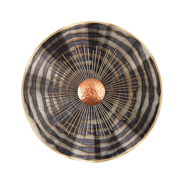 somewhere in the distant center of the universe the massive eruption of a neutron star has begun; its explosively radiating bright Copper center causing a pulse of nebulous concentric rings to blast into the distance. Introducing our Pulsar Series Metal Wall Decor: Because high concept design spaces require high energy enhancements. Perfect to make a bold statement in the entryway. Alluring Bastille Silver color story.