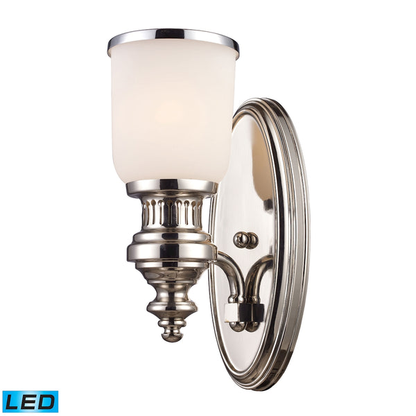 Chadwick 1 Light LED Wall Sconce In Polished Nickel And White Glass