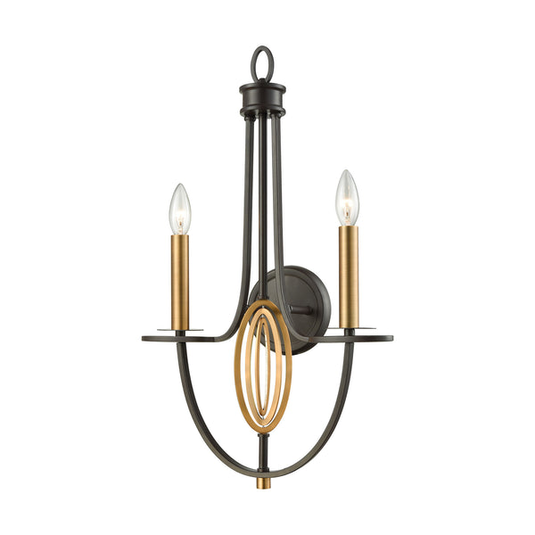 Dione 2 Light Wall Sconce In Oil Rubbed Bronze With Brushed Antique Brass Accents