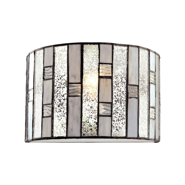 Silver mercury glass and rippled clear glass are pieced together to form a geometric mosaic pattern in the Ethan collection. Finished in tiffany bronze.