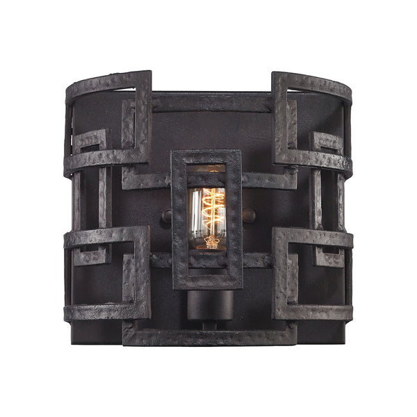 The Garriston collection is constructed of heavy cast iron rectangles that are distressed and welded together displaying a brutalist sculptural look. The stark lines criss-cross into a chaotic and engaging pattern boldly emphasized by the Clay Iron finish