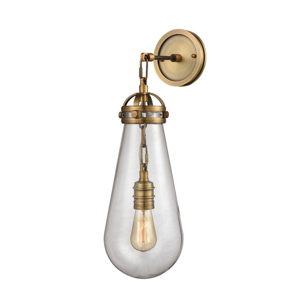 Gramercy 1 Light Wall Sconce In Classic Brass With Clear Glass