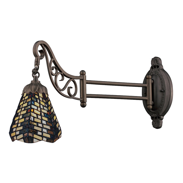 A Tiffany Bronze Finished Mix-N-Match 1 Light Swingarm Made Of Metal And Multicolor Glass