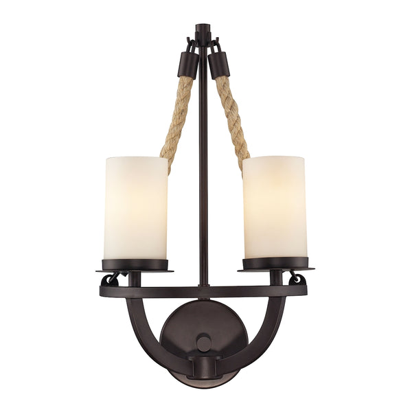 Natural Rope 2 Light Wall Sconce In Aged Bronze And White Glass