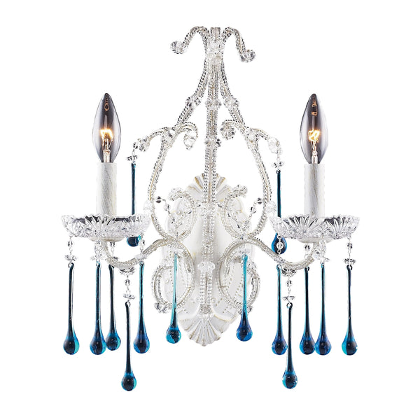 Opulence 2 Light Wall Sconce In Antique White And Aqua Crystal