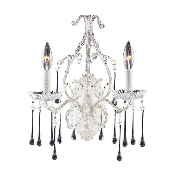 Opulence 2 Light Wall Sconce In Antique White And Clear Crystal