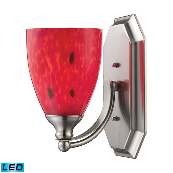 Bath And Spa 1 Light LED Vanity In Satin Nickel And Fire Red Glass