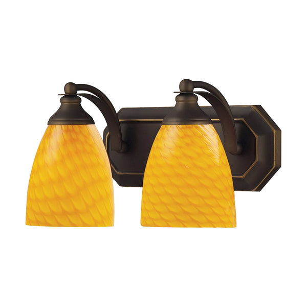 Bath And Spa 2 Light Vanity In Aged Bronze And Canary Glass