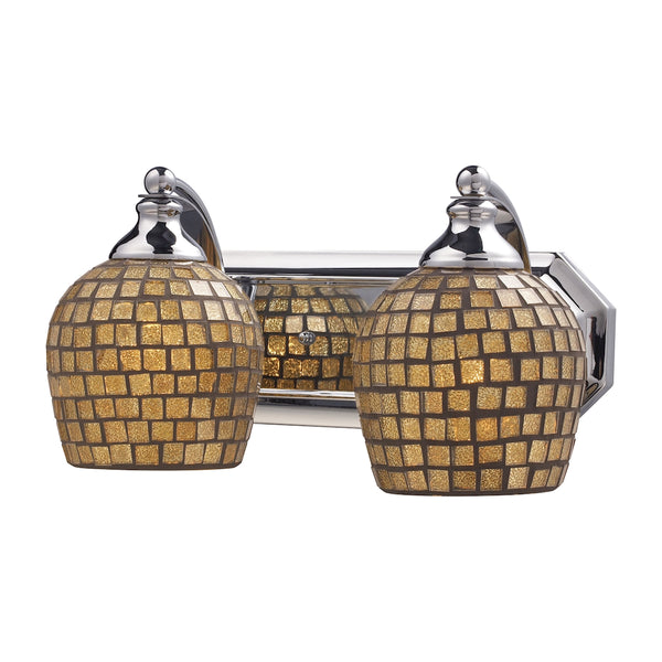 Bath And Spa 2 Light Vanity In Polished Chrome And Gold Leaf Glass